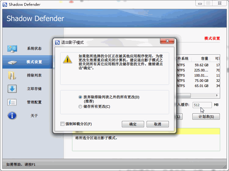 3) 「重要」非系统分区退出影子模式后会让你选择保存或者放弃对该分区数据的更改操作,可在不重启的情况下完全退出(除非有进驻于系统的进程);系统分区退出影子模式都需要重启。