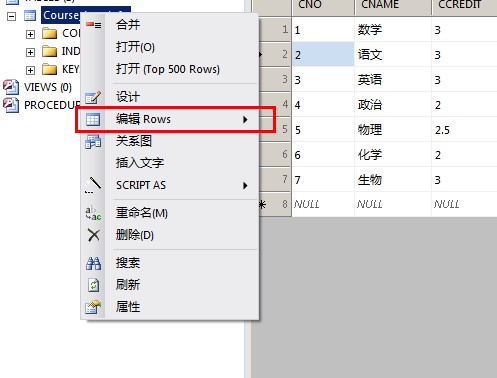 打开表数据