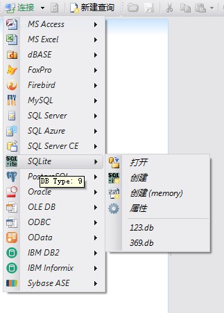 如果是SQLITE,SQLSERVER,ORACLE都会在右面显示当前连接的数据库引擎的版本