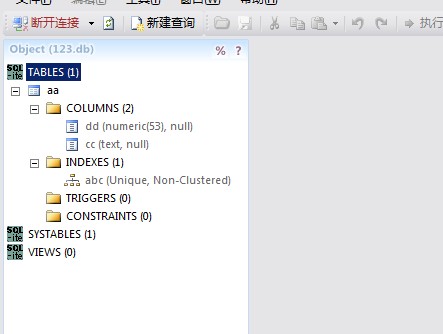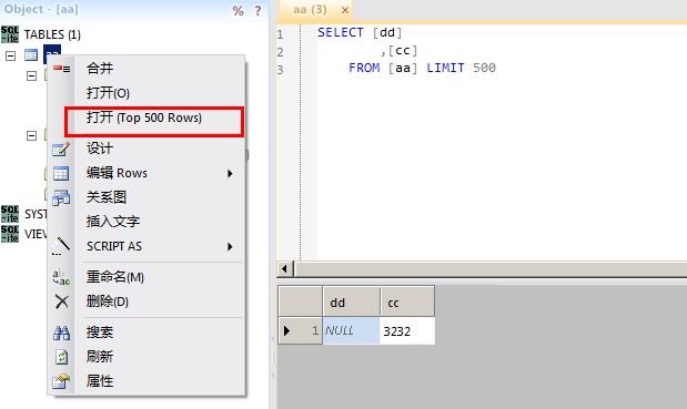 这个软件好在有简单的SQL语句语法提示,例如SQLSERVER里使用top关键字,而SQLITE里使用limit关键字来查询一定行数的表数据