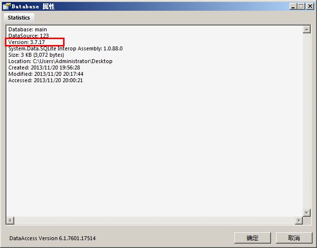 在空白的地方点击属性就可以看到当前这个SQLITE文件的版本