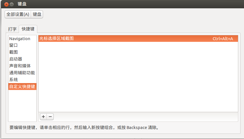 设置区域选择截图的快捷键