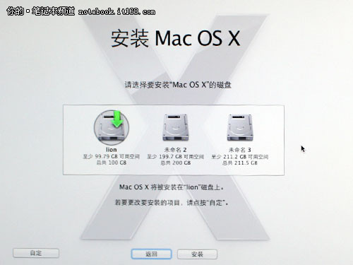 接下来的事情就简单了,继续安装,选择Lion分区。