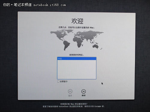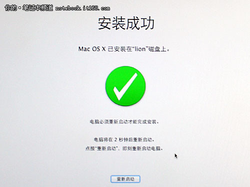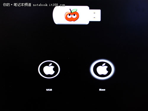 重启之后并不是马上进入系统,和安装Windows一样,我们还需要设置一番。重启后自动进入选择界面,用方向键选择右边的Lion系统。