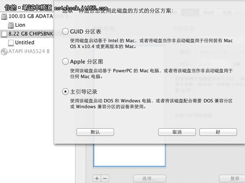 ▲分成3个区,为方便记忆,把用来装系统的第一个分区命名为Lion