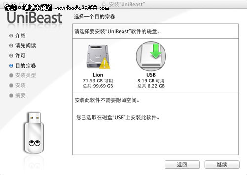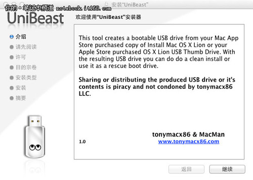 格式化完毕后,运行UniBeast软件来制作黑苹果安装盘。