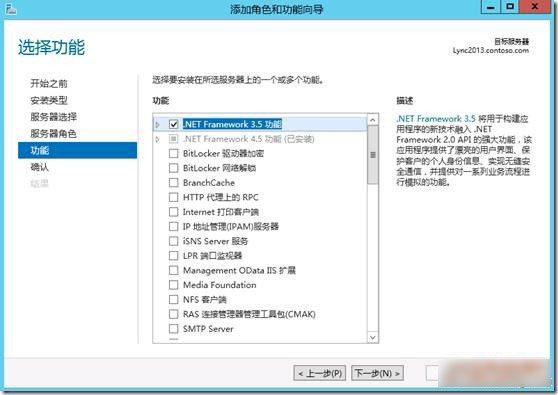 安装Microsoft .Net Framework 3.5(需要sever2012安装镜像并指定文件位置)、Windows Desktop Experience、Message Queuing、Windows Identity Foundation、