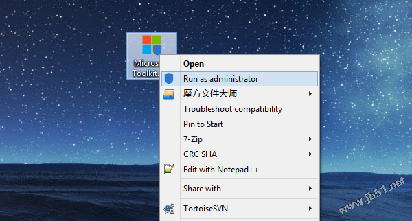 1、选择Microsoft Toolkit并“以管理身份运行”,右下角的图标选择你要激活的产品,左侧为Office,右侧为Windows