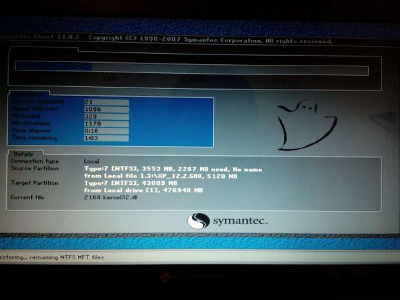 跟装普通系统一样,运行onekey,不过调整一下还原分区,默认的还原C盘,现在咱们还原D盘