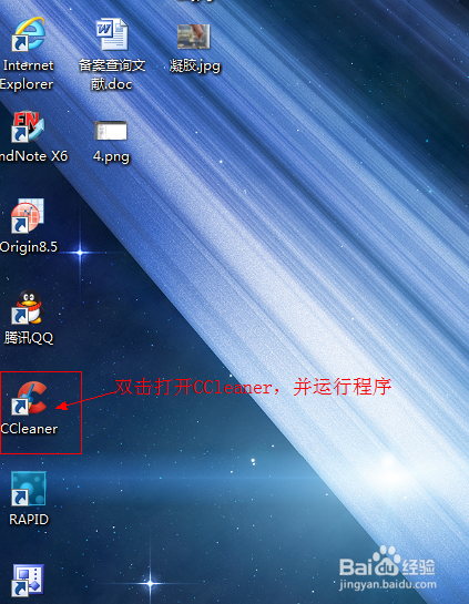 在桌面双击“CCleaner”快捷方式图标,如图——