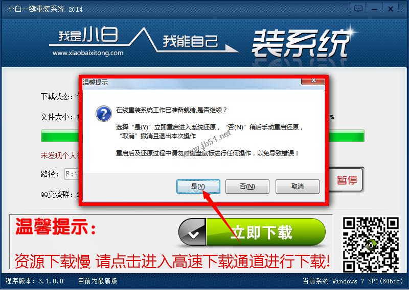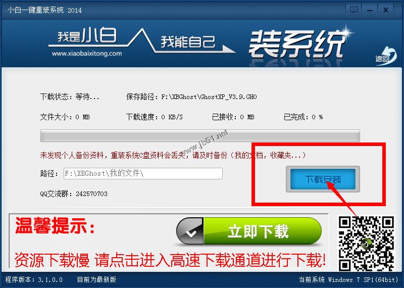 温馨提示:如果软件不能实现下载,一方面排查上述磁盘空间情况,或者点击下方的高速通道进到小白官方的网页下载系统文件到本地的非C盘目录,然后再通过小白软件的一键还原功能进行安装!
