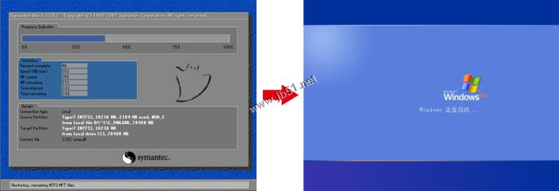 第五步、电脑进去系统安装还原界面,等待即可;一段时间过后系统再次重启则进入系统欢迎界面,系统重装大告功成!