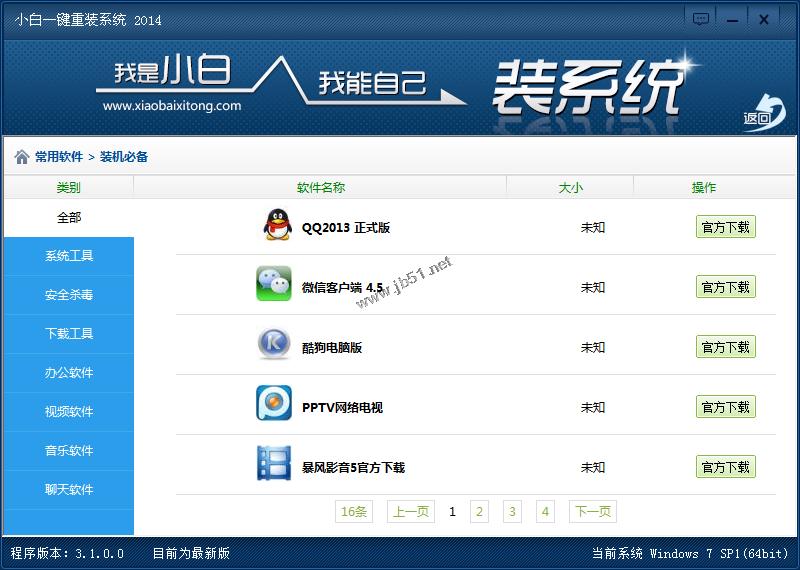 进入安装好的系统后可以再次打开小白一键重装工具点击右下角“软件安装”进入常用软件下载界面,一些你日常所需要的软件在这里都可以立马下载安装,非常方便!