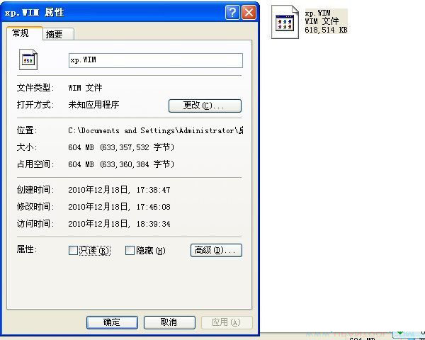 现在把C盘上的文件用Wimtool制作成XP.WIM,有604M ,这种方式比原来压缩了近30M。