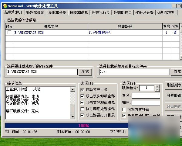 基于对老毛桃PE的研究,外置程序都放在OP.WIM中,于是联想到用WIM文件来打包系统,因为现在很多手工备份和恢复系统,都是基于imagex技术的。