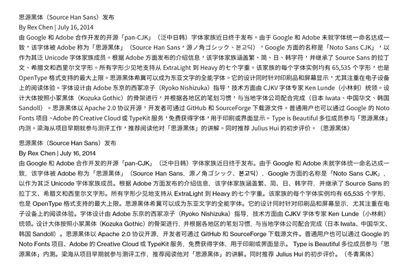 有Google作金主,动员数家字体厂商合力,思源黑体也得上花三年去开发。