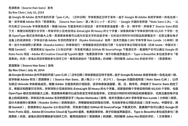 而且,开源的目的并非为了冲击市场,或制作一款完美无暇的字体招揽用户。反之,作为业者,我更觉得Adobe跟Google抛砖引玉,发一球强劲抽击挑动各大厂商的神经,为CJK字体世界作一次重要预示。