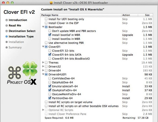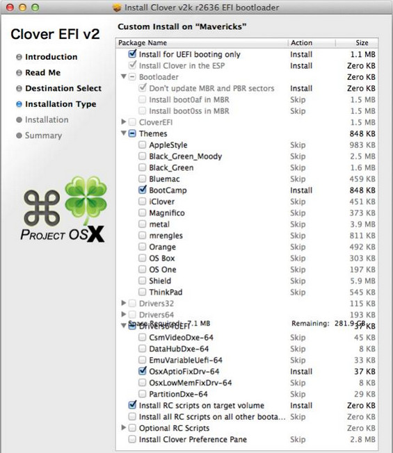 在这一点上,最简单的方法是从您的USB驱动器的根目录下安装引导程序,抓取备份,和复制直接工作于系统硬盘的EFI分区中的文件。不管怎样,让安装后的系统100%适合你,必须按个别情况下完成。没有一个单一的四叶草设置会很好地工作在每一个系统。为了获得最佳的兼容性,建议EFI分区也被重新格式化为FAT32,而不是默认的HFS。