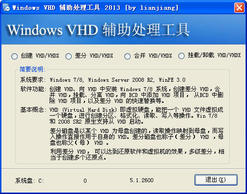 2、解压并运行“Windows VHD/VHDX 辅助处理工具 2013”,点击“创建 VHD/VHDX”