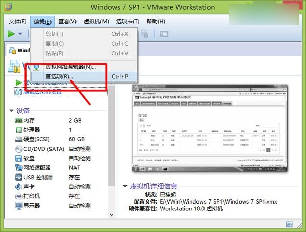 1、打开VMware Workstation,点击菜单中的“编辑-首选项”;