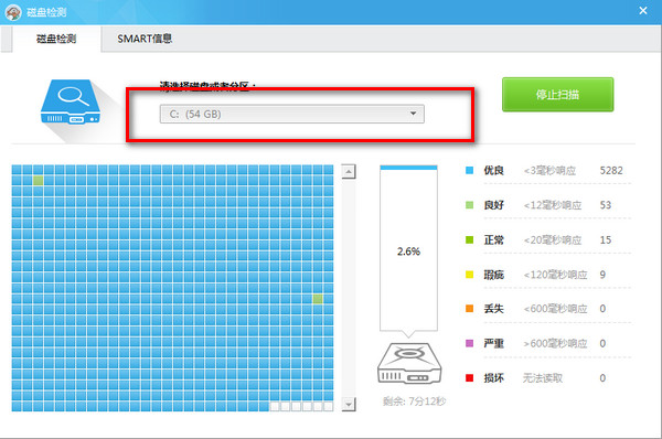 4、扫描完成后,点击查看SMART信息,所有的磁盘问题都会显示