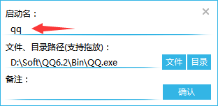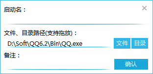 首先,我们拖动我们桌面上的快捷方式,例如“QQ”到程序界面处。程序将弹出以下界面: