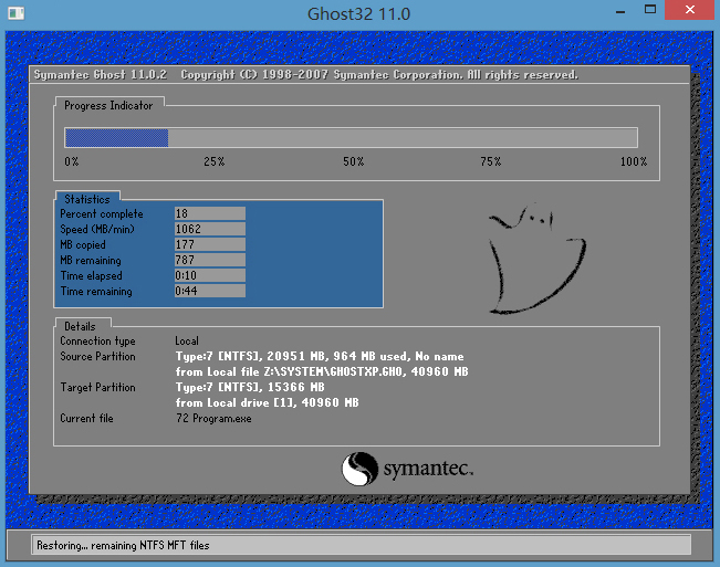 在重装系统过程中,不需要我们在进行多余的操作,此时所见到的画面是u深度一键还原精灵所提取的文件释放到所选好的磁盘分区的过程: