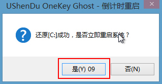 释放完成后,会弹出还原成功的提示窗口,此时点击“是(Y)”重启电脑即可: