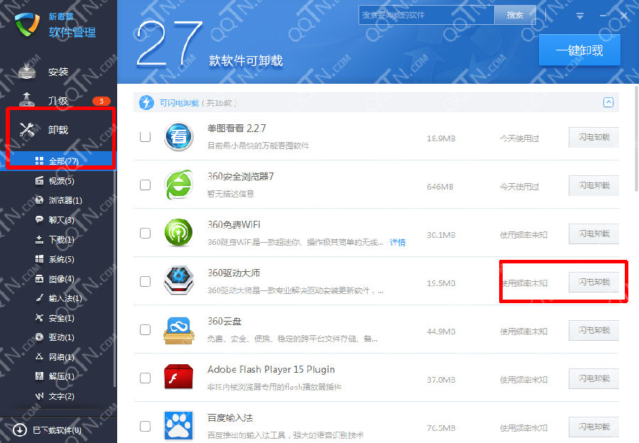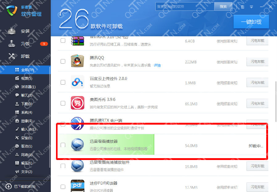 2、进入软件管理之后,寻找下方的卸载,,你就可以看到你电脑中所有可以卸载的软件。