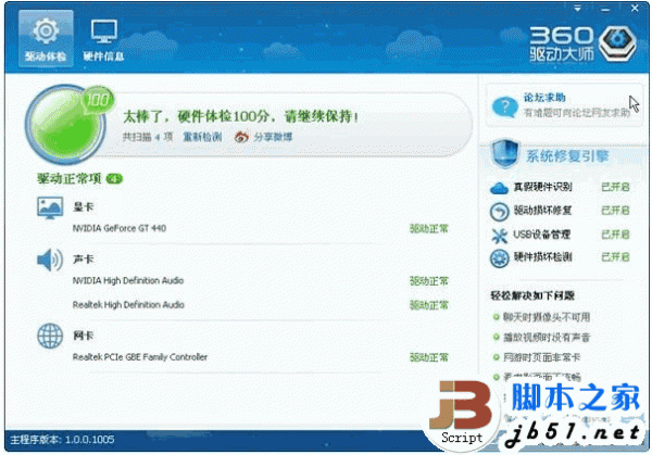 360驱动大师是360仿照国内的驱动精灵、驱动人生等电脑驱动管理软件设计的一款能够自动识别并为用户安装、更新驱动程序的计算机驱动工具,360驱动大师是一个不错的硬件检测软件,各种驱动问题都可以帮助你解决,同时还可以一键驱动更新,非常方便分为普通版和带网卡版。使用360驱动大师安装备份驱动,轻松维护好电脑。