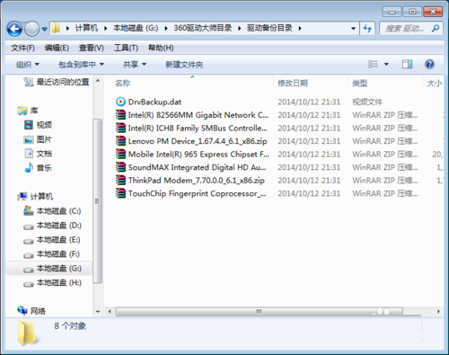 6、【查看备份】笔者的计算机驱动程序被默认备份到G盘,直接按下图路径和名称打开,即可看到备份好的驱动程序。如下图