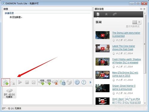 2、打开daemon tools lite,点击左下角的添加命令。