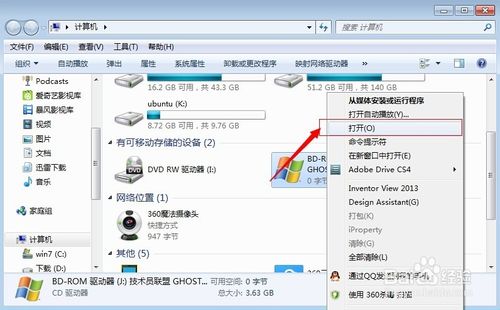6、然后打开我的电脑,可以看到光盘镜像文件已经被载入,然后右击--打开命令。