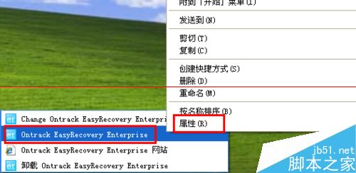 2、在开始菜单上右击 Ontrack EasyRecobery Enterprise ,然后选择 属性 :