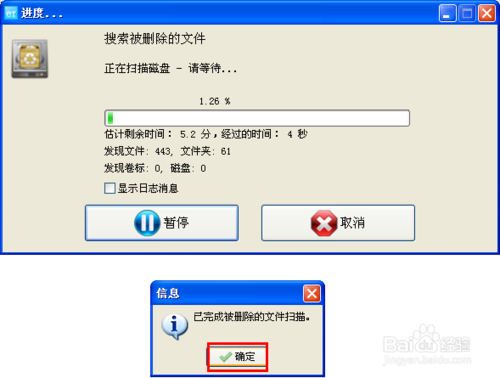 6、耐心等待程序扫描结束,然后点击 确定 :