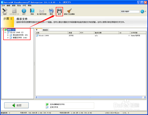 7、在程序的右侧选择要恢复的文件或者文件夹,然后点击 保存 :