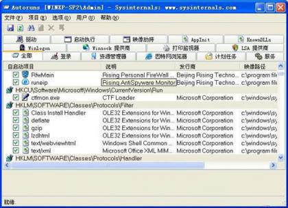“启动执行”:在系统登陆前启动的本地映像文件(即WINDOWS映像文件的对称)及自启动项的情况。形象地理解一下,就是貌似瑞星的系统登陆前扫描这样的自启动项。