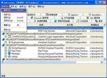 我们知道HKLMSOFTWAREMicrosoftWindows NTCurrentVersionWinlogonUserinit这个自启动项是不能删除的,否则系统无法登陆,其注册表值项值正常情况下“c: windowssystem32userinit.exe ,”(注意逗号是必须有的!),当病毒或者恶意软件入侵后,可能造成该注册表值项值被改成“c:windowssystem32 userinit.exe ,ABC.EXE”,这个多出的ABC.EXE就是病毒(流氓软件)插入的病毒随系统登陆自启动的病毒进程。在AUTORUNS中是不允许修改自启动项值的,怎么办?别着急,AUTORUNS已经想到这点啦,按照下面的办法就可以搞定了: