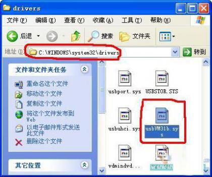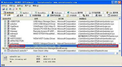 8、为了彻底不留后患,按照AUTORUNS提供的信息找到该映像文件(删除ZSMC301B这个自启动项前可以在其项目条上右键,选择“复制”,将复制内容粘贴到写字板或记事本中,以便删除映像文件时查找该文件的路径和文件名),删除c:windowssystem32driversUSBVM31B.SYS这个文件。