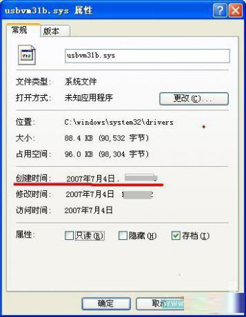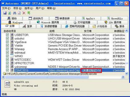 如通过SRENG扫描日志发现有个不明驱动项目USBVM31B.SYS在机中活动!(这里仅仅是在举例,实际上这个服务项目是摄像头驱动,而且为了说明问题我对该映像文件的“属性”做了修改,实际该文件并非病毒驱动文件,不可照搬使用哦!)