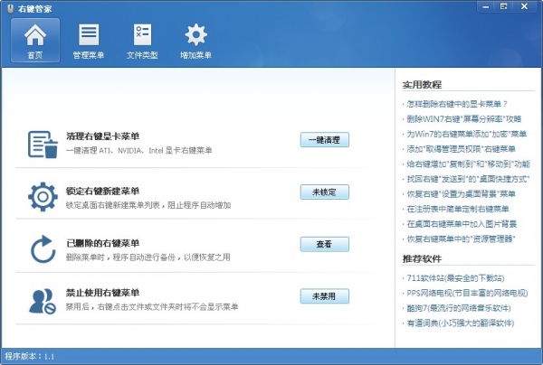 1、双击打开右键管家,软件界面上有几个常用的右键管理选项