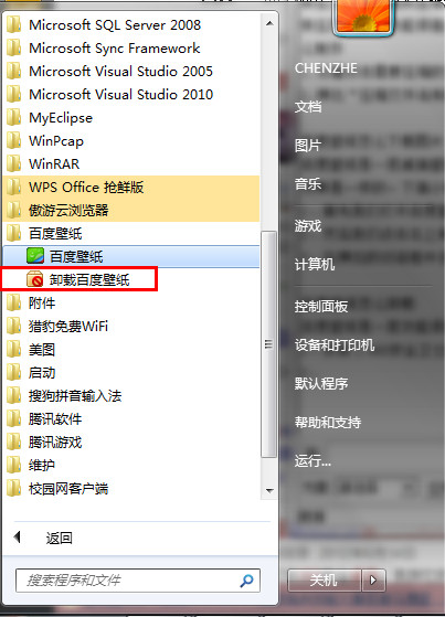 方式二:点击开始===百度壁纸===卸载百度壁纸