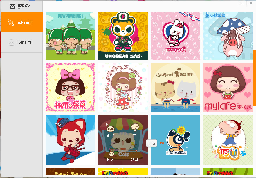 2、然后我们再主题中可以看到“鼠标指针”这个选项卡里面有很多指针,都是大家喜欢的卡通人物大家可以选择自己喜欢的下载使用