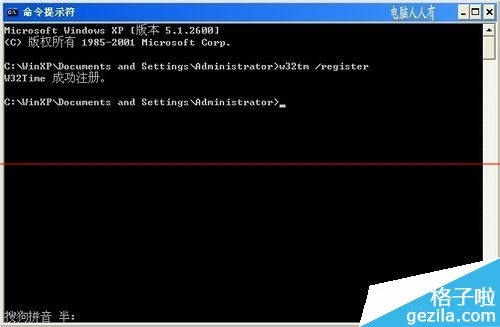 5、输入命令:w32tm /register (按回车键执行)稍后,正确的响应为:W32Time 成功注册。