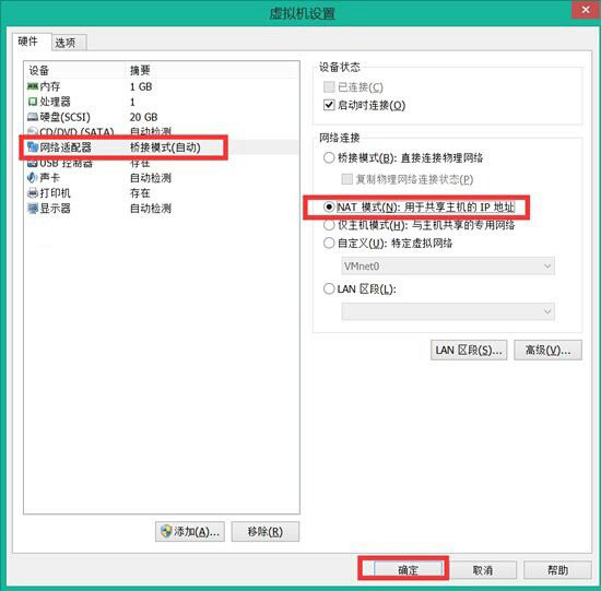 4.如果你没有设置过,默认的是NAT,点击确定即可。