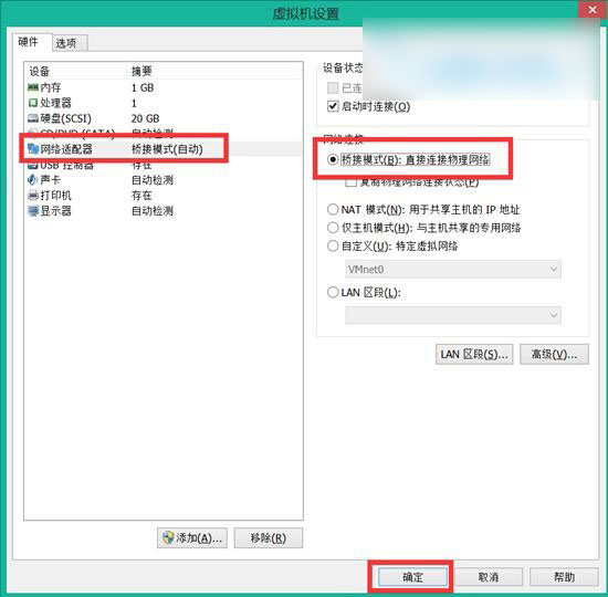 3.然后勾选“桥接模式”确定即可,如图所示;