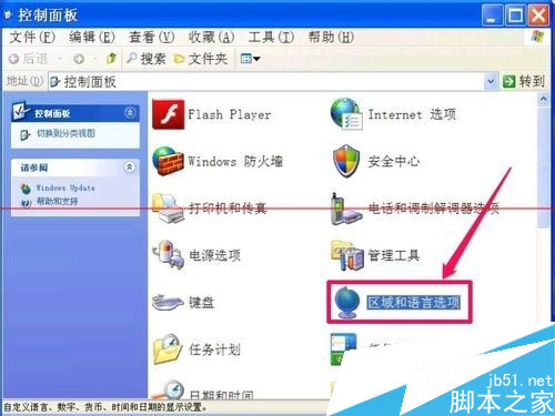 2,进入控制面板窗口后,找到“区域和语言选项”这一个图标,双击打开此项。
