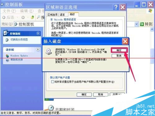 4,如果在设置“中文(中国)”区域语言时,弹出窗口,提示“插入磁盘”,这可能是“中文(中国)”语言字库损坏,必须修复安装。