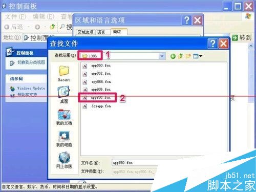 5,需要有原版系统光盘,插入光驱,从i386文件夹中提取app950.fon文件,然后进行修复安装。