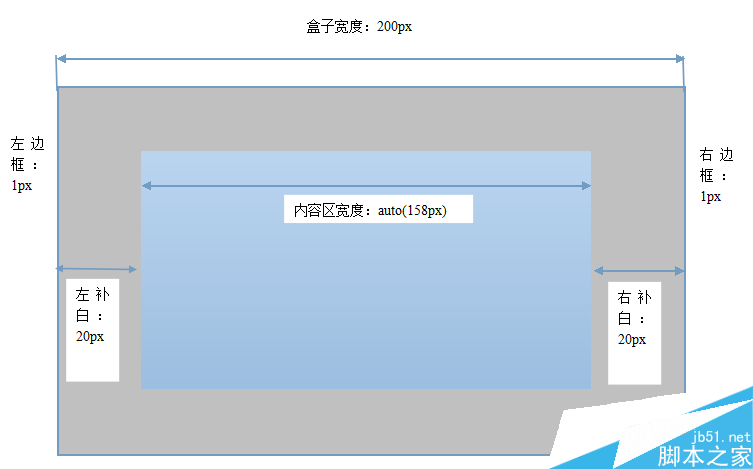 与上面不同的是,当你设置box-sizing:border-box以后,这就能达到你想要的目的。例如,上面我们想要一个宽度为200px的盒子,那么我们直接设置宽度为200px。是不是看起来清晰多了。当再设置它的左右边框和左右补白后,它的内容区会自动调整。这可能更直接和一目了然。CSS代码如下: